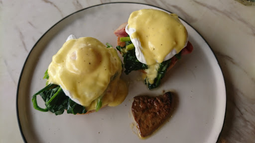 Verdict? The eggs were a teensy bit too runny for my taste. The bun got a wee bit too soggy, but the flavors were all there and all in all it was a nice brunch.