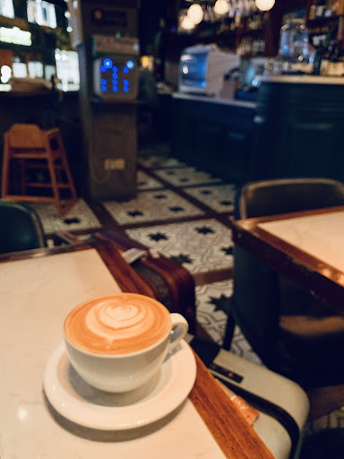 Read moreIdeal place for a date! This is a lovely cafe in a trendy, nice area of town. The interior is very nice, and you also have the option to sit facing the street in the open air, watching well dressed people walk by. The coffee and food is very good, and the staff are very nice. The WiFi did not work on my laptop, but worked on my phone. At night, they put flickering faux candles on each table, the place is dimly lit, and you...