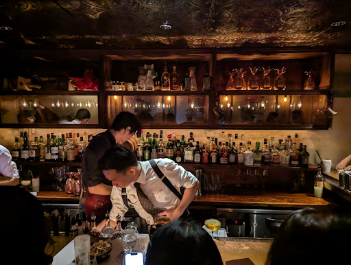 Atmosphere 9/10 Hidden entrance behind a bookshelf of a bar tools shop âOCHOâ. Very cool upscale-pub atmosphere. Intimate/dark lighting and great vibe. A lot of typical details for Shingoâs bars.