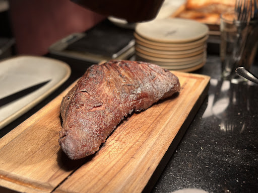 Yummy steak (get the steak. Juicy) Yummy salmon (or the salmon. So good) Yummy pork ribs