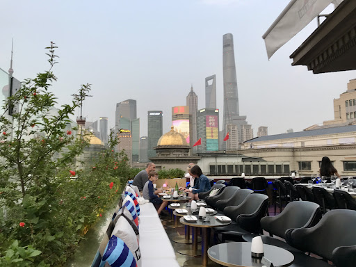 La vista: Ubicada frente al Bund, esta terraza tiene una de las mejores panorámicas de Pudong. De noche, el reflejo de los rascacielos iluminados sobre el río Huangpu crea una atmósfera mágica.