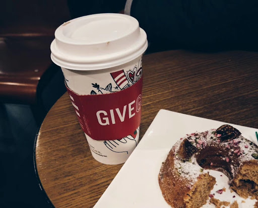 Небольшой аккуратный Старбакс. На 1 этаже. Потому прохладно в зимнее время. Персонал всегда приятно приветлив. К вечеру могут закончиться сэндвичи. Можно сделать карту постоянного покупателя - и получать бонусы. По выходным многовато посетителей, но и в будни бывает...