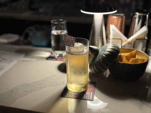 這款雞尾酒使用Del Maguey VIDA Clásico Mezcal,搭配芒果🥭、抹茶、洛神花🌺和柚子蘇打。杯中放置的冰磚刻上了酒店「MOBAR」的名字🧊,讓人感受到這道招牌特飲的獨特魅力✨。整體口感豐富,讓人陶醉😍。