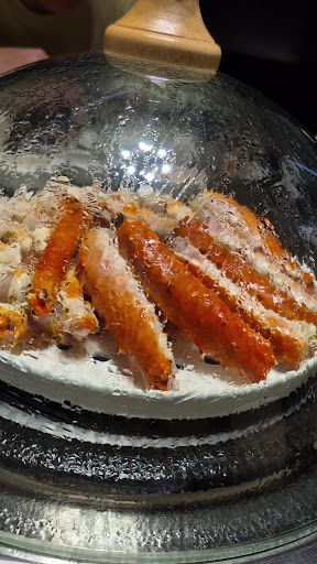 This is a quite famous seafood restaurant. It was full the entire time werl were there. We had a room for our own. Seafood is ordered from the aquarium. Cooking concept for the seafood is by steaming in a special contraption. The bottom has congee which was flavoured by the seafood juices as it is steamed above it. Our orders of Alaskan crab was good and fresh. The steamed egg and unni was also good while the truffle fried rice was a real stand out. We also had scallops, goose feet, salt baked prawns, and ice veggie all of which were good. The orders that failed was the geoduck and wagyu beef slices. The geoduck was not fresh hence had a bad fishy smell. The captain denied that it is not fresh hence we ultimately got the geoduck slices fried in ginger and scallions. The wagyu was wasted by steaming the slices rather than bbqing it.