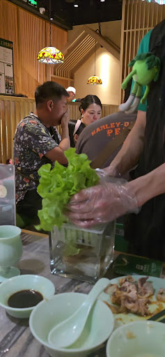 Very good experience. Food was excellent and service very good. 4 of us arrived around 6.45pm and had to wait for half hr before getting a seat. The place is huge. Spans across half of level 4, but the restaurant was crowded. We ordered the special coconut chicken soup. The 1st round of the soup was full of coconut juice. According to the display, they say that the 1st pot is filled with the juice from 4 coconuts. Very refreshing and light. The special soup had added coconut slices, red dates, bamboo pith and water chestnut. Recommend. Free flow of top up soup, but not coconut soup. If top up coconut soup it's another 22¥ so we decided not to get that. We ordered half a chicken for 4 of us. Also got the volcano beef. Thinly sliced and good. Left the coconut pieces in the soup so the coconut boiled in the soup. Coconut was a bit hard to eat. Maybe not ripe. Still tasted tasty despite top up of plain soup. Added the taro/ yam, shrimp paste and also the beancurd skins. Ordered the hydroponics vegetable which is really like farm to table. In fact the "farm" came to the table. The server helped us to peel the vegetable from the roots and put it into the soup. Good experience! Finished the meal with the Hainan refreshing dessert. Not sweet. Nice end to the meal. All in we paid 313¥ for 4 pax. May not be the cheapest but definitely value for $....
