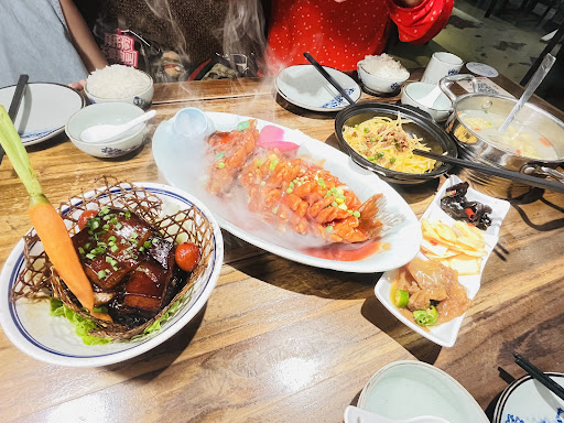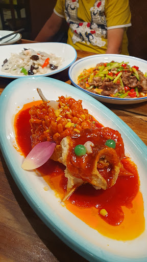 Food was interesting. We tried the fried lily buds with water chestnuts, fried beef, garlic prawns, and a thick soup. The dishes were on the salty side so when we asked for reduced salt, the thick soup came tasteless which we found so amusing. The ambience was great. The entrance was hard...
