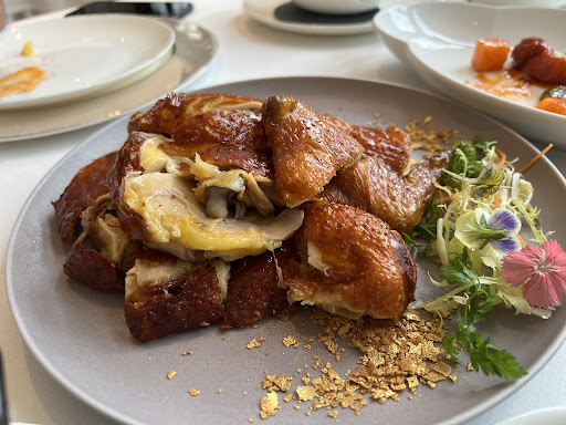 Read morePlace closed a long time, pond was sucked dry, little egrets were gone, sad site for awhile. The old barn type restaurant was remodel, rebuilt, modernised….. one day I was travelling north bound & saw the pond returned, barn turned into a nice white doom building, nice, except no birds. I decided to see the transformation so I went online reserved table for 2, dinner! Corkage was 250, so I ordered from menu. Arrived, outer structure & layouts was same as before, but renovated, all white, great lightings, clean, elegant, like it! I picked the side that serve Chinese, just my mood that evening. Greeted by a nice receptionist, nice high ceiling, airy, elegant corridor lead into a huge doom shape room size of a hall. Tranquil, romantic, white table cloth like a French restaurant. Manager nicely highlighted the menu, I picked 3 dishes that can reflect chef’s skill. Crispy chicken, sweet & sour Ibérica pork & dried scallop Enoki Mushroom Braised Pea Sprouts. All 3 dishes were beautifully prepared, great taste, pricier than most Chinese restaurant, but worth it, fine cuisine! Pinot noir was ok to pair, great evening! Will spread the words & revisit, oh say hi to a beautiful cat if you see it...
