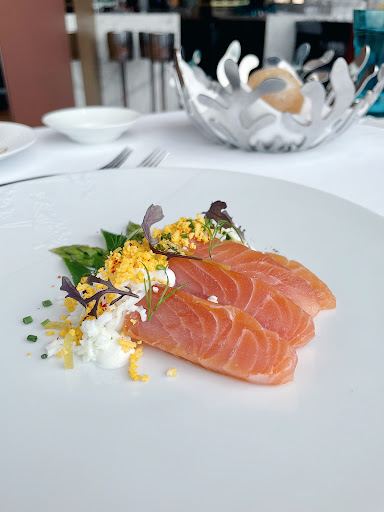 AURORA 🇲🇴 . Incredible 3-course Italian lunch set for just HKD 268, with amazing service and great view of the harbour😍 The waiter was incredibly nice and truly perfected our experience! They also had the cutest miniature Tabasco bottles🤣 . 🐠The smoked salmon had great flavours and worked beautifully with the egg shavings and asparagus👍🏻