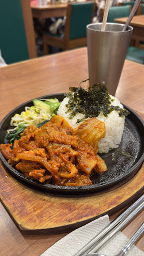 Read moreFairly Cheap Korean Restaurant serving fast food style Korean Rice / Noodle dishes. Ordered a Fried Pork Belly with Kimchi on Hot Iron Plate with Rice, and it cost less than 60 Dollars. The seasoning is normal with fair amount of pork and kimchi. The sides are just normal. Just one minor poor thing is the drink, the honey in Cold Citrus Honey Drink is not dissolved well...