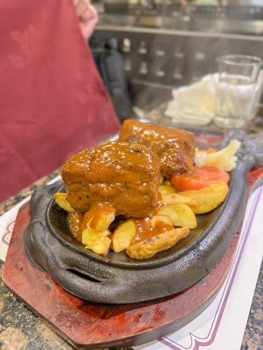 I picked their special at the top but was really disappointed it came on a normal plate whereas everyone else was sizzling all around me on. The sundae that came with it was just 2 scoops of icecream on those really old metal icecream bowl. To be fair the steak was OK but just OK. Won't be...