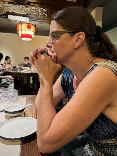 In mitten des Essenmarktes habe ich ein paar Peking-Enten entdeckt und sehr hegtisches Treiben am Eingang… nach kurzem Zögern, haben wir beschlossen das Abendheuer einzugehen. Unglaublich, hinter dem Eingang finden wir eine gigantische Welt mit vielen kleine Nischen zum Essen. Wir bekommen einen süßen Platz, der noch schnell hergerichtet wird. Es gibt eine Karte im Tablett mit Bildern, doch ohne Chinesisch Kenntnisse müssen wir uns schnell über die App verständigen… irgendwann sind wir uns einig! Unsere Peking-Ente ist spektakulär! Schnell freunden wir uns mit den den anderen Gästen an…. Ein rund um...