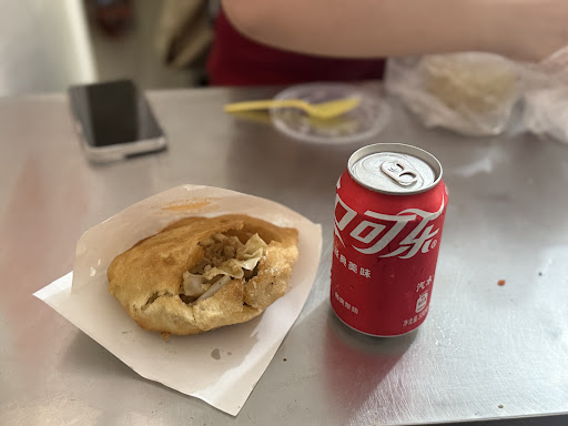 Read more油饼包烧麦,6.5一个,油饼和烧麦都是现做的,有几个老师傅站着包烧麦,速度很快,基本上蒸熟一笼他们能包出两笼来,油饼很酥脆,炸成空心汤圆的样子,然后拿筷子戳出一个洞,放四个烧麦进去,烧麦有点点稀,胡椒味很浓,里面有肉末和鸡肉丁,整体偏油,作为早餐,个人建议先吃点清淡再吃这个,女生的话,一般一个油饼烧...