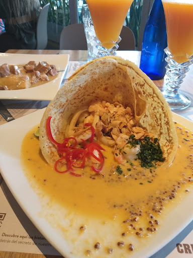 Read moreWe were turned down from the Arboleda Mall location and decided to come here on a Thursday for lunch with my Mom. The service was impeccable: friendly, kind , attentive and prompt. Mom had the veal cheese and spinach crepe and she was delighted, but mine stole the show: I had the sea in coconut crepe (shrimp, calamari and octopus on a coconut base sauce) and it was amazing!! The pictures don't do it justice. We also had the gulupa (purple passion fruit) and uchuva juice and it was magical!! What a lovely experience, thank...