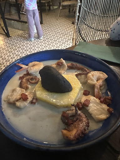 Read moreEs un lugar muy exclusivo para pasar una rica velada sea de almuerzo o cena los platos son muy elaborados para mi gusto son porciones moderadas algo pequeñas, pero quedas bien, los Cócteles son variados y algo costosos al igual que la comida pero el lugar y la atención lo justifican. Las pizzas son deliciosas y de buen precio aproximadamente entre 45 mil pesos pero el resto de los platos pueden estar entre 50 mil 70 mil 90 mil y más. El parqueo aunque tienen Valet Parking es abajo pero las personas se puede bajar en todo en frente de la entrada. Eso si hay que decirlo el lugar es muy bonito se nota el gusto y el esmero por hacerlo muy agradable y cómodo. Además la atención que nos dio ERIKA fue muy buena conoce la carta y es muy clara en manifestar los sabores y presentaciones de los platos y la presentación de los meseros es excelente. Te reciben en la recepción y si tienes reserva es mejor. En fin mucho por decir y para repetir. Para terminar por persona pude ser más de 100 mil pesos si te antojas de las delicias que allí hay. Ricos los postres. etc. Faltaría algo de música en vivo creo yo pero es más restaurante. Bueno esta noche fueron 1 entrada, 1 postre, 3 sodas saborizadas, 3 cocteles y 4 platos fuertes y aunque todos estaban deliciosos me quedo con el Chicharon acompañado de Rissotto. Muy...