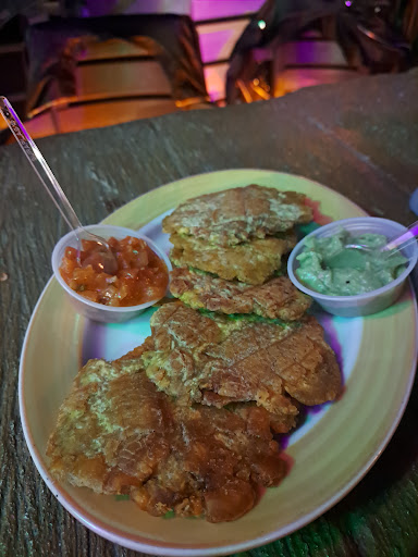 La comida en este lugar es costosa y mejor optamos por pedir platos más sencillos. De entrada unos pataconcitos con guacamole y hogao, Pedimos hamburguesas que se llama la "tía en la usa" y un chuzo de pollo. La hamburguesa estaba buena, me gustó la mezcla de sabores que tenía.