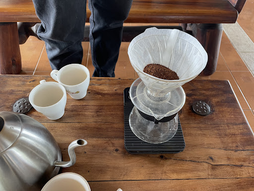 The Wush Wush was painstakingly prepared and very impressive to the last drop. We were also offered a slice of local speciality cake just for stopping by. Finally an extra tasting of Caturra for contrast, which was also excellent.