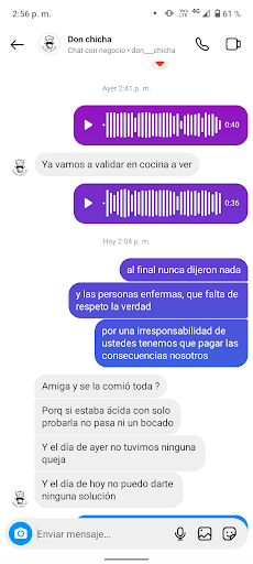 Me comunico por vía instagram y me sentí como si yo hubiera hecho algo malo ya que la manera en la que abordaron mi queja, la asesora no supo manejar ni un poco la empatía literalmente me sentí como si yo fuera la que estuviera o sea tuviera la culpa de lo que pasó, ni un poco de empatía hubo, gue un error de ellos yo solo interpuse mi inconformidad ni siquiera les pedí el reembolso solo quería que verificarán,...