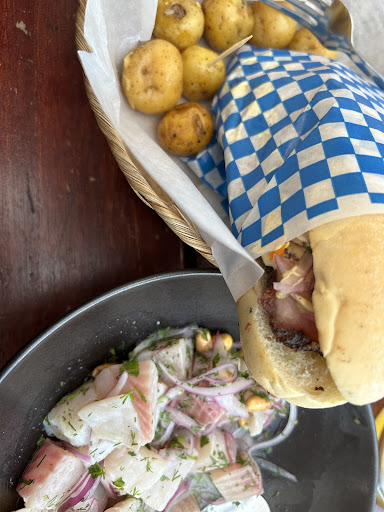 Y los Sandwiches y las entradas, nada más que desear. El pollo, cerdo y mariscos, increible sus jugos y sabores. Cada trozo lo disfrute y me transmitió mucho, ¡Una verdadera explosión! La verdad, si les gusta la combinación de sabores, lo recomiendo muchísimo. ¿Y las bebidas? Probamos una cerveza artesanal y sin falta... Una exquisita chicha morada. Ambas muy ricas, como gusto personal, la última me encantó, adore su toque de clavos (probablemente), aunque me encantaría que fuese más grande.