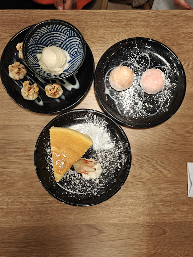 The desserts were also good, but the cheesecake was definitely the best out of the three that we tried. The arequipe gyozas were okay, and the lychee Mochi ice cream was good. Still, we all concluded that the cheesecake was the best.