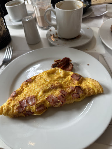 The service was wonderful - we walked up with no reservation at around 10am on a Sunday and had no trouble finding a table for 3. We got the ham and cheese omelette which was great, the croquet monsieur was great (fair warning it’s super rich, but super delicious), and the star of the breakfast was the French toast. The French toast was made with brioche and served with back - we all agreed it was amazing. We recommend getting the bread basket to start as well! The prices were what you expect for the area but...