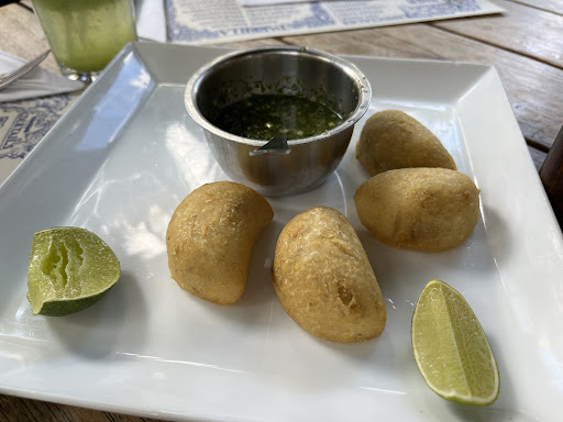 First of all, this is just a lovely place to eat. The designers paid great attention to detail, resulting in a very pleasant environment, whether you choose to eat inside or on one of their excellent patios. Coming from below-zero temperatures in Wisconsin, we had to choose dining in a lush garden. I got off to a great start with a very generous pour of a crisp Chilean white. Then came the most amazing empanadas we have ever tasted. Crisp pillows of pastry with a delicious mashed interior. We squeezed on a bit of lime and then spooned on a very tasty green sauce (aji .) I ordered the 3/4 pound grilled salmon (ordered medium); they allowed me to sub spinach for the usual French fries. The salmon had a crisp edge; the filet was melt-in-my-mouth perfection. The spinach was perfect. I thought that 3/4 pound was a lot and it was. But I didn’t leave a single flake on my plate. My brother ordered pork tacos. They came ready-to-eat, with sides of guacamole, tomatoes, refried beans, remoulade and crisp fresh greens. He pronounced them the best he had ever had. The servers were friendly and efficient. We left with wide smiles on our faces, trying to figure out how we can fit in another meal here before returning to the...