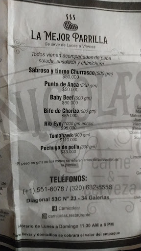 Read morePésima experiencia. Nos ofrecieron servicio a la mesa para no hacer fila para recoger la carne en el asador y dijimos que sí. Eso tiene un costo adicional y lo pagamos. Lo que no sabíamos era que el servicio a la mesa solo sucede cuando ya no hay nadie en la fila. Uno asume que es antes o por lo menos en el orden de llegada. No es así. Media hora después cuando todas las personas que llegaron después de nosotros tenían su pedido, fuí a preguntar. Pues no. No habían pasado nuestra orden. Uno supone que pagar más, hace más rápido el pedido. Repito, pues no. Nos dijeron que ya salía. Media hora después volví a preguntar y nos dijeron que la carne se había acabado que estaban haciendo más, pedí devolución del pago para irme y nos dijeron "ya en 10 min" . Pasaron otros 30 minutos y nos llevaron la mitad del pedido, el cerdo bien pero la carne de vaca quemada, pasada, llena de nervios y dura. Y faltaron las costillas. Comimos todos, faltaba un plato, a las dos horas y 15 de haber llegado decidimos irnos sin el plato que faltaba. Y pedimos devolución. Sí nos devolvieron la plata de lo que no llegó. Dejamos la mayoría de la carne de vaca que estaba horrible y nos fuimos. Muy mal servicio y pésima comunicación. Si dos horas antes de salir de mal genio y con hambre le explican a uno lo que está pasando uno puede tomar una decisión informada. Si le dicen a uno, "que pena se acabo la carne se demora dos horas en estar, ¿quiere esperar?" uno decide...