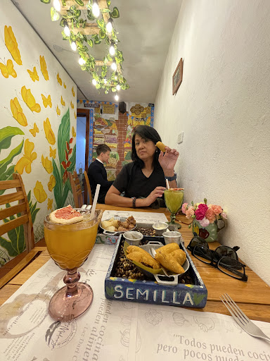 We went in for lunch, we were sat in a hallway , we sat across from each other to not block the walkway, was awkward arrangement , no windows, just waiters passing by frequently to a back dinning room thru the hallway we were seated in . We ordered two drinks that were very good with passion fruit purée and pineapple , they were good. We ordered the chicharrón with yuca and it arrived quickly but it was cold, not warm, cold. The yuca was ok , no onions like it said on the menu either, disappointed. We ordered the empanadas of carne and they were ok, a little dry but at least they were piping hot and the hot sauce that was served with it was nice, not the usual ají casero that is usually served with empanadas. We ordered a shrimp rice dish also that was served with patacones and a small salad on the plate. The vinaigrette was tasty , a few of the shrimp were not fully cooked , we left most of it. Overall we were very disappointed, restaurant staff were friendly but I had to ask 3 times for a colombiana soda and it finally came with no cup or ice which is not a biggie but having to ask 3 times was annoying . No one ever came to the table to ask how things were or if we would like anything else. Had to ask a random food runner for our check , when our server arrived it was slick that they added service charge without asking , mind you I have never not given servers the service charge, it’s not that big of a deal but it just should be asked for and not assumed or just snuck in. There are lots of great places in the candelaria , this is not one of...
