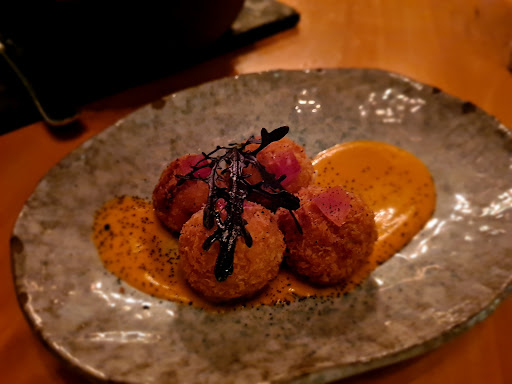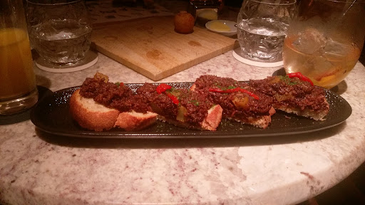 I tried the "Tostas de morcilla" (Blood Sausage Toasts) which are made with real Spanish pure blood sausage, not Colombian rice and peas rendition, and honestly one of the best blood sausage-inspired dishes I've ever had.