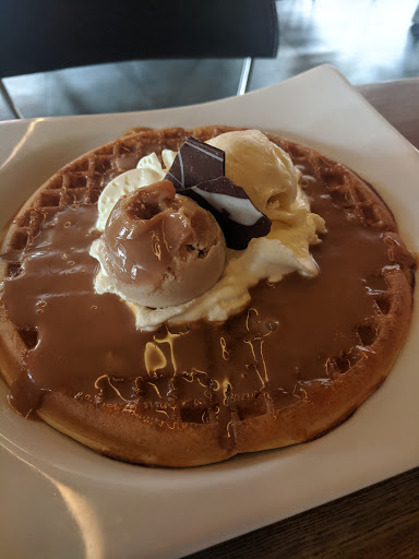 Fantastic food at a low price, but no attention to detail. I had a Serrano meat crepe for sustenance and a scrumptious special waffle soaked in a sort of chocolate caramel sauce, arequipe, topped with a scoop of vanilla alongside caramel ice cream engulfed in whip cream, with chocolate thins in the center. And all washed down by my elixir, a G fruit and milk blend.