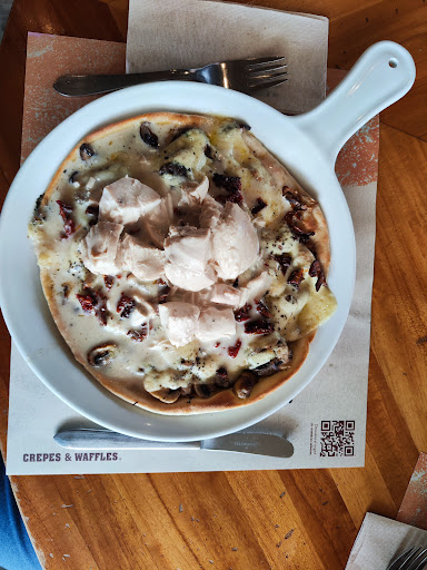 I love crepes and waffles, good service. The food is very very tasty. Most of their dishes are crepes, but you have a great variety to choose from. The waffles for dessert are too rich, I have always loved their service, their products, the kindness and the good prices. They think of everyone when creating and delivering products of such good quality. The place is very good as always: comfortable, clean, always an experience, I like it very much! As always meeting my expectations, I must admit that it is very crowded on weekends and at peak hours, so it is advisable to go to the site in off hours to live the experience to the fullest, it is also a gourmet proposal behind a very nice social project to fight against inequalities of women. I went back to this chain after almost 3 years and I was transported in time. All the dishes are delicious and the rotation of the menu leaves you always wanting to return to enjoy all their delicacies, depending...