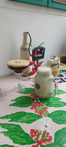 Read moreFuimos en una noche en la que queríamos probar el café y fue una sorpresa. Definitivamente lo mejor de todo fue la comida, probamos una torta red velvet, muy suave en azúcar, cero empalagosa, probamos una empanada de carne mechada y tiene un guiso muy rico, es una empanada muy rica. Probamos un granizado de café y tiene salsa de café y es muy rica. La joya de la corona fue el jugo de chamba, un jugo que nos sorprendió totalmente, nosotros no sabíamos que decidir y el chico que atiende nos lo aconsejó, nos dejamos guiar y fue una gran sorpresa, es una fruta ácida y dulce a la vez, un sabor difícil de explicar pero muy rica. Inspirados en su pueblo natal en Boyacá hace una gran mezcla cafetera en la ciudad. Muy originales y deliciosas....