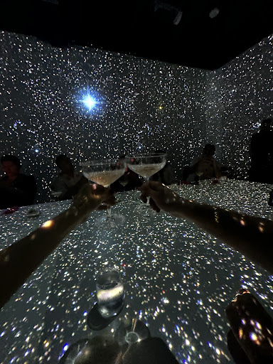 El lugar está saturado de proyecciones que cambian con cada plato, pero la sorpresa inicial se desvanece rápidamente, y las proyecciones no parecen complementar de manera efectiva la experiencia. Además, las incongruencias culturales, como la ambientación china con saludos japoneses o música de reguetón en un entorno de playa con términos hawaianos, restan coherencia al conjunto.