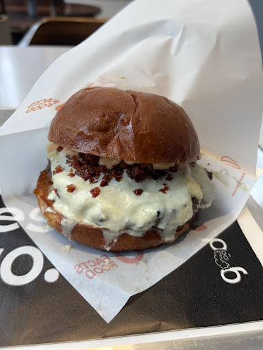 La comida en general es espectacular. Los ingredientes son de muy buena calidad, y se nota el esfuerzo por elevar la comida rápida con propuestas diferentes a lo que normalmente se encuentra en Bogotá. Las papas trufadas son las mejores que he probado en la ciudad y la salsa es una locura. Definitivamente, la comida hace que valga la pena la visita.