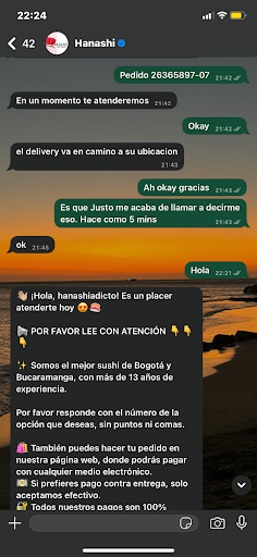 Read moreLes cuento mi experiencia con Hanashi sushi, vivo en la zona Norte de Usaquén (Cerca al Pricemart de la 170)normalmente pido domicilios por Rappi y el restaurante que nos prepara las piezas de sushi es el de cedritos y nunca tengo problema, pero cuando pido directamente en la página mandan el domicilio desde una sede en la 170 con 49b-46 (Villa del Prado), este lugar ni siquiera tiene letrero ni aparece en Maps, es una casa cualquiera y lo sé porque tuve que ir hace 2 años a ese lugar a pedir devolución de mi dinero porque la comida estaba en pésimas condiciones y a través de la página no hicieron nada, hoy 22 de septiembre de 2025, volví a hacer un pedido por la página y nuevamente el lugar que preparó el sushi es el que les mencioné anteriormente y la experiencia es al igual que hace 2 años un verdadero desastre, el sushi no es fresco y el acevichado llega con olor a descompuesto. Los dos pedidos que realicé corresponden a la promo 40x50. Pésima experiencia no los recomiendo y deberían tener cuidado con los domicilios de este restaurante las personas que viven cerca a esta zona ya que no hay garantías de salubridad en el lugar que...
