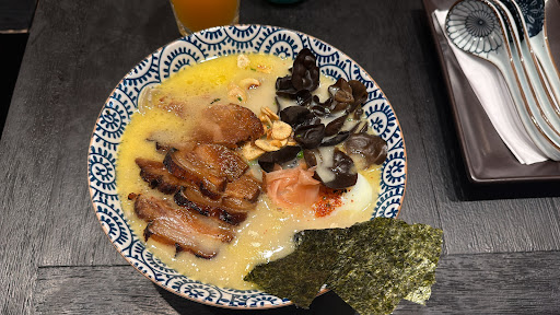 I tried the tonkotsu ramen, which was decent but not remarkable. The portion was on the smaller side, and I was disappointed to find that the traditional marinated egg (ajitama) was missing—replaced instead by what seemed like a poached egg. The chashu pork was also too sweet for my taste, which threw off the balance of the broth.