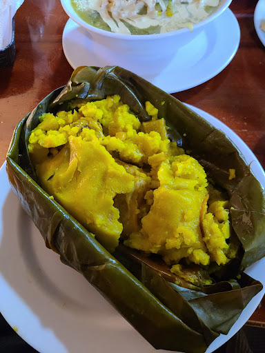 The first reaction is that it was a huge tamale wrapped in plant leaves compared to a traditional corn husk tamale. This created a beautiful aroma on the nose while allowing the chicken to remain decently moist, falling off the bone with every bite.