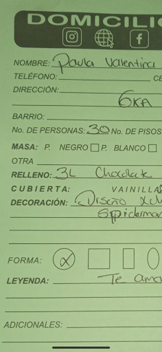 Hoy tube la peor experiencia con el servicio de esta pastelería. Solocite una torta de tiramisu desde el dia 12 de este mes, fui en persona a la pasteleria en el barrio restrepo con la intención de tener total claridad sobre el servicio de domicilios y si podía cordinar la entrega. Ante la negativa acorde en ir el dia de hoy despues de la 5 de la tarde a recoger la torta y lo que me encuentro al llegar es que no solo la torta no estaba lista sino que en lugar de la que yo había solicitado ellos tenian una torta completamente diferente y me salieron con un monton de escusas. En primer lugar me dijeron que el pastelero leyo por encima la orden y por eso se equivocó luego me dicen que pueden hacer un bloque con 10 porciones de postre de tiramisu que no es lo mismo que la torta o llevarme una torta diferente, a pesar de que el día que hice el pedido especifique que queriamos la de tiramisu por que era de gusto especial para la persona a la que le hariamos la celebración, al final después de casi una hora decidiendo que hacer tuve que tomar la opcion de llevar una torta diferente pero remataron mi indignación cuando salió alguien más a pedir disculpas con la estupida razon de que leyeron mal el pedido por que los pasteleros que trabajan con elloa son muy viejos. Si así es la cosa que cambien los pastelero o a la chica que tomo los pedidos por que no entendieron la letra con la que escribio la orden o que pongan u sisitema digital que imprima los pedidos para que no haya mal entendidos pero aun con eso no podran compensar la frustración de no poder hacer un buen presente a una persona...