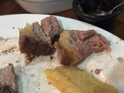 What a shame, the meat quality is sub par, but our server was cheery and enthusiastic (although he does not cut meat like a gaucho 😂). They massacred the picanha 😱, the only meat that was edible although dry was the cupim (hump). Oh and the chicken was tasty. But really not worth the price for the rodizio (109,000 COP). Service was ok, they kept coming with new types of meat quite frequently. I would recommend the restaurant to adopt the Brazilian style red and green coaster. Leave one at every table and When you’re hungry turn it to green and when you’re done flip it to...