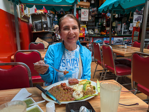 Pasamos de casualidad por la novena de Bogotá y gracias a los porteros del restaurante nos dejaron subir a verlo,el restaurante es cómo un museo con alusiones a la tauromaquia,al folklore colombiano y a todo lo relacionado con un tiempo pasado y tradicional con una exposición permanente de objetos antiguos, fotografías de personajes famosos, artistas, actores, músicos y bellas pinturas de paisajes típicos colombiano en una casa antigua tradicional bogotana con techos altos y hermosos bajorrelieves. La carta ofrece carnes de diversos cortes y un menú ejecutivo a precio asequible,lo único que no me gustó es que la comida no la sirven demasiado caliente ya que se ve que está hecha anteriormente y las porciones no se corresponden a las de las fotografías del menú, tratándose de una bandeja paisa, esta podría incluir una buena tajada de plátano 🍌 maduro y un generoso cuarto de aguacate 🥑, producto nacional y muy barato. El arroz con pollo en cambio se ve una buena ración acompañada de patatas fritas francesas y ensalada. Excelente jugo de mango 🥭 y la cerveza club Colombia bien fresquita. Con mimar un poco más la comida harían de este sitio el mejor del centro de Bogotá,sin lugar a dudas. Un gran descubrimiento. Viva...