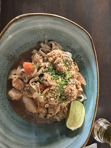 The building houses several restaurants . The atmosphere was nice between elegant and casual. This one served “Asian” Cuisine but the taste was not authentic Asian. Don’t get me wrong, the food always edible and well prepared. For example I ordered a Pad Thai which is a a typical Thai dish. It had too much liquid in it. I have had these traveling thru Thailand so I know what the authentic taste is like. Service however was impeccable. All in all a decent place to have lunch but don’t expect authentic...
