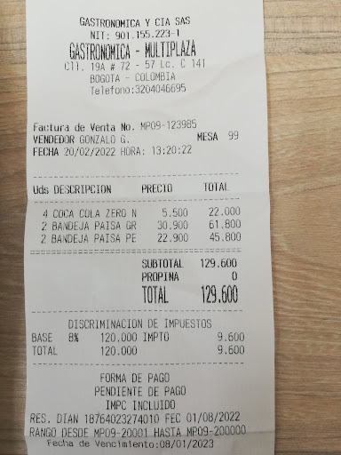 Read moreTuve la oportunidad de ir con mi hermana, y la verdad fue una mala experiencia. Para iniciar pedimos de entrada dos empanadas de queso, tenían poco queso,estaban duras y frías, nos llevaron las bebidas que habíamos ordenado y el jugo que yo pedí estaba tibio seguido a esto, nos llevaron la bandeja paisa y estaba fría, el chicharrón grasoso y súper duro no se pudo morder bien, mi bandeja no tenía casi carne, la arepa estaba súper fría también, lo único bueno fue el aguacate 🥑, y pagar más de 30.000$ por cada bandeja y 4.000 por cada empanada, en total casi 100.000 por todo, es una decepción con lo fea y fría que estaba la comida. Definitivamente no hay peor tusa que pagar por comida fea y aparte cara. Si tienen la oportunidad de ir a este lugar, no...