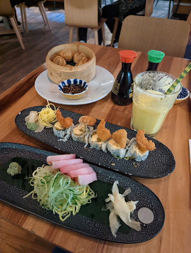 I ordered some rolls, salmon sashimi, gyoza and a mango drink. The gyoza and rolls were decent but salmon sashimi was aweful. I could not taste the salmon at all, I was biting into ice and the color looked suspect too. Lastly, the service was horrible. I waited minutes before I could get a waiter to notice that I didn't have a menu (qr code). Again, once I asked for the bill it was another 15 mins to get it. The place was full of waiters but not one...