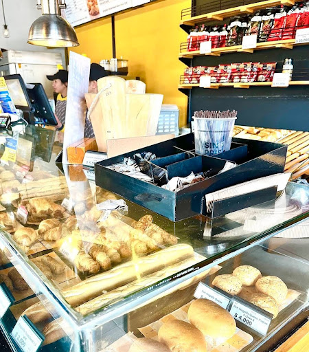 An economic american style bakery where you can find french bread, crossiants, rolls, and a variety of baked goods. Very friendly staff with clean amenities. It's the perfect stop for a quick office run during your break. They accept all mayor credit cards and cash. They have a other non baked good such as fresh...