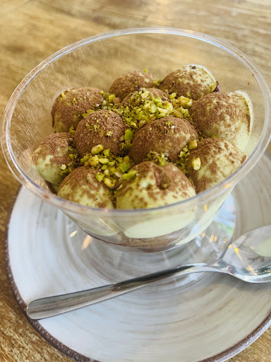 Por recomendación de redes sociales, llegamos a probar el Browniemisú de Pistacho. Al llegar, vimos que estaba lleno y había una mesa disponible. Desde ese momento el que parece ser el dueño/gerente nos trató de forma displicente señalándonos la única mesa disponible que había.