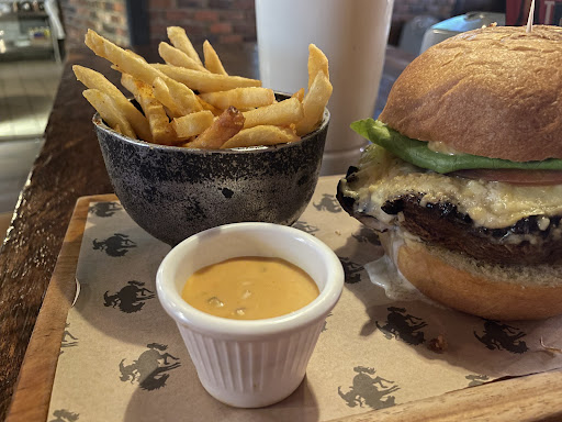 Read moreDe entrada al local le falta mejorar la distribución del espacio... los booths con espaldares a 90 grados, super incómodos, y las mesas atrás super pegadas al tv inmenso que brilla más que la iluminación del sitio, deberían replantear eso. Con respecto al personal es amable y atento. El tiempo del servicio es muy largo casi 40 minutos en tener la orden y el sitio lo estaba ni a la mitad de la capacidad... y la comida, primero un sandwich con cajun debe ser picante... y lo anuncian como tal y este no lo es definitivamente, el pollo estaba bien hecho pero con una ensalada casi sin sabor y un pan mojado y duro. El pulledpork decepción total, pareciera que fue descongelado para servir el plato. La relación de precios con respecto la calidad, sabor y tamaño de la comida es desproporcionado, en algunos sitios se pagan los precios altos con gusto porque la comida está ofreciendo una experiencia, pero aquí definitivamente ni...