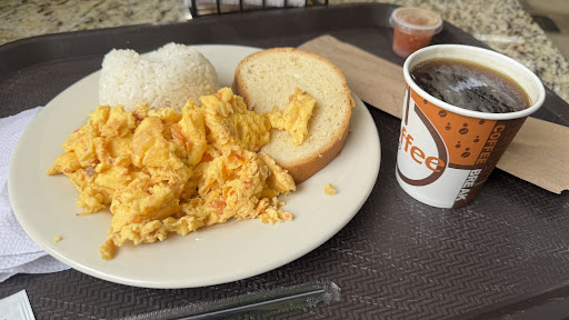 Even though it is located along the busy street, the place is in a corner and has low noise level from staff and customers. Service was quick. Eggs made to order. Less than 8 mil for scrambled eggs, white rice, slice of bread and coffee. Can’t beat the price. Good portion. Will definitely return. Recommend it.