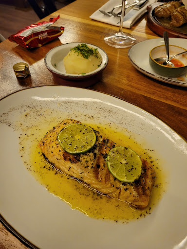 Read moreLa verdad estoy muy desilusionada, los precios son muy elevados y la comida la verdad que no lo vale. He ido a comer 3 veces, la primera vez me comi un steak pimienta, la carne era buena pero de guarnición solo había arroz blanco que estaba bastante insipido y nada mas, el plato costo casi 70mil, es un abusó, la segunda pedi un salmón a la parrilla con vegetales asados, los vegetales la verdad que no podría llamarse guarnición la porción tan pauperrima que manejan y el pescado estaba seco; después decidí pedirme una hamburguesa (fácil ¿No?), La pedí termino medio, estaba muy cocida y la carne estaba seca de nuevo.... Puedo conseguir una hamburguesa de la misma calidad por un precio que sea proporcional a la calidad.