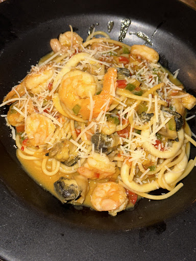 I expected more from this place given the reviews. The cocktail didnât taste right⊠then the food recommended by the server from the menu, was not even the same food that came out. The seafood pasta was advertised as black squid ink pasta with a variety of seafood but it was not that AT ALL! Not only did it take almost an hour for the food to come out, but at no point did anyone communicate with us about the dish coming out being different than the picture / description on the menu. When I noticed, I mentioned it to the server and thatâs when they said they had to make adjustments. Barely any seafood. Honestly after a bite or two we didnât even want the rest. The manager was rude and threatened to make the servers pay for the meal. That seems unprofessional to me. The restaurant shouldâve owned up to their mistake and apologized. We did not have more time to waste to wait for another dish- since we were going straight to the airport. We almost missed our flight trying to argue with management about our bill.