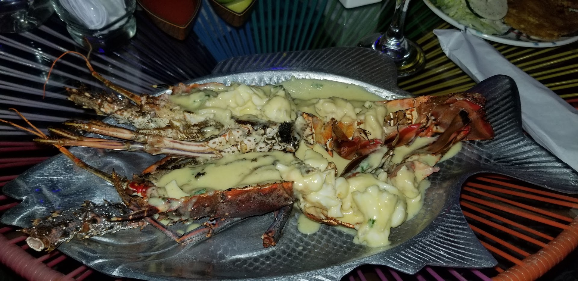 The Langosta a la Termidor was rich and creamy, while the a la Menier offered a delightful buttery taste that complemented the lobster beautifully. The arroz served alongside was a perfect accompaniment, absorbing the rich sauces and enhancing the overall experience.