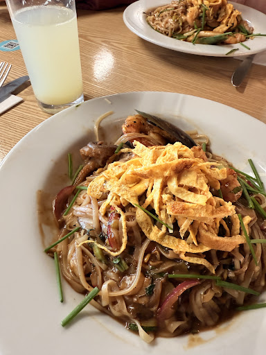 Read more📍Cóctel del Mar - sede San Roque El día de hoy estuve en Cóctel del Mar con unos queridos amigos. Decidimos ir a la sede de San Roque, ya que hemos escuchado muy buenas reseñas del lugar. Como entrada, ordenamos unas croquetas de pescado, las cuales de sabor estaban muy buenas; sin embargo, la textura era algo extraña, lo comparo con algo cuajado, lo cual afectó que solo disfrutara. Como platos principales pedimos: una hamburguesa de salmón con papas, la cual estaba bastante grande, pero algo seca, le hacía falta algo de salsa. Adicionalmente a las papas, venía una sala tártara exquisita! Podrían agregarla dentro de la hamburguesa, en mi opinión. También pedimos un arroz Bangkok vegetariano, ya que yo siempre me voy por algo del menú vegano/vegetariano, que ofrezcan los restaurantes; estaba rico, tenía bastante cebolla roja, muy similar al típico arroz chaufa peruano. Mi amigo Félix, se pidió una paella valenciana, la cual en tamaño estaba bastante bien para dos personas, el sabor estaba bueno y traía bastantes camarones. Y mi amiga Cami, se pidió un Salmón a la parrilla, en mi opinión el mejor plato de los cuatro; traía arroz con coco y patacon, además de una sopita de pescado. Asimismo, ordenamos un sushi de 16 piezas variado, estaba normal, nada fuera del sushi común. En general, las porciones son bastante generosas, pero la atención de los fines de semana me imagino que es más complicada, por la cantidad de comensales. Fue una buena experiencia, y los precios están bien, por persona, rondan entre...